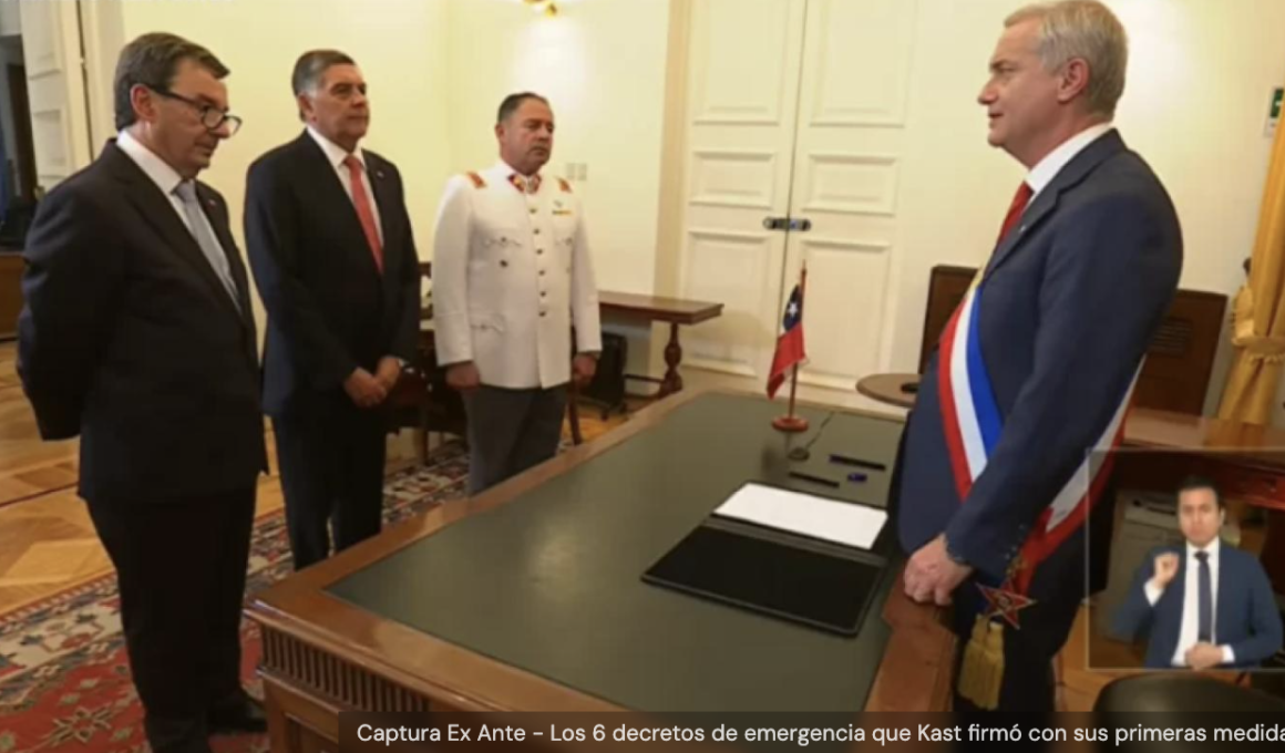 Como correlato de su gobierno de emergencia, sostén político y programático de su administración, pasadas las 21:30 horas, José Antonio Kast firmó los primeros seis decretos e instructivos de…