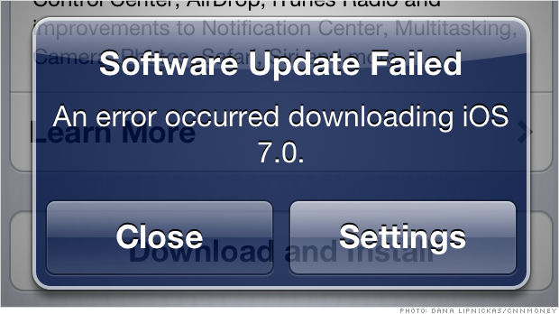 Lo que ocurre es que hay más personas intentando usar los servidores de Apple simultáneamente que los servidores pueden aguantar. Y no sólo tienes que conectarte para descargar el software, sino que debes conectarte de nuevo para que los servidores verifiquen que el hardware y el software son legítimos antes de que puedas instalar iOS 7.