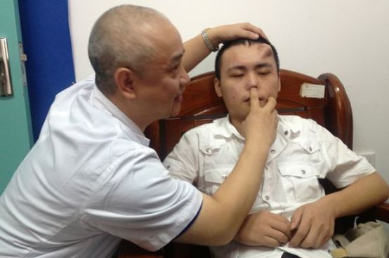 Médicos chinos le hacen crecer una nariz en la frente para luego suplantar la nariz original dañada.