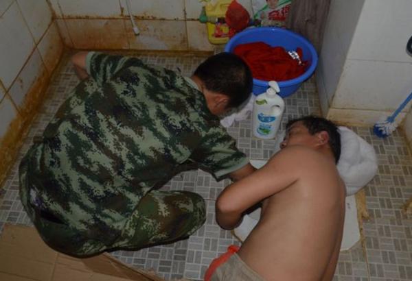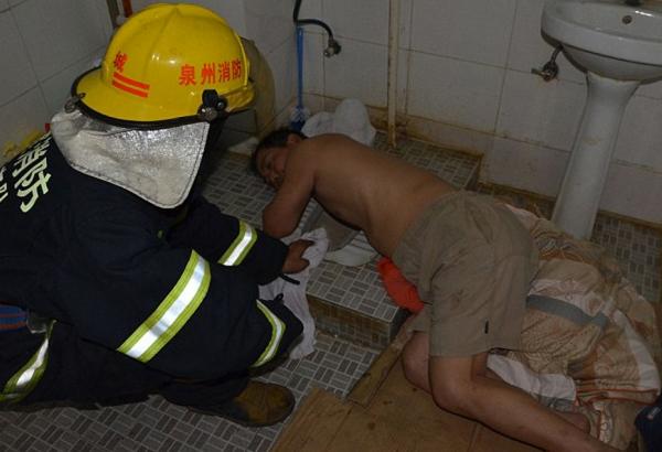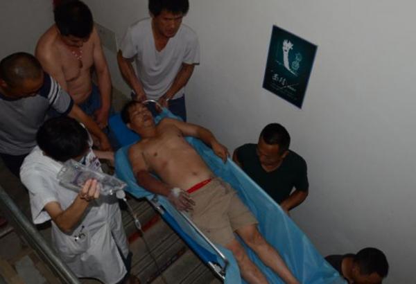El insólito accidente se produjo en China. El hombre tuvo que ser rescatado por los bomberos.