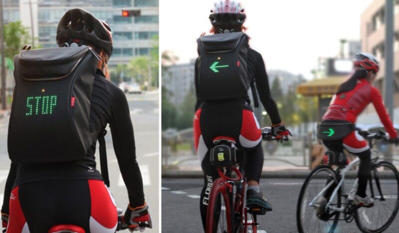 Cuando eres ciclista y quieres avisar a quienes van atrás que vas a doblar, una posibilidad es usar los brazos para hacer gestos. Sin embargo, no siempre resulta lo más fácil o seguro hacer esto, por lo que se han creado algunos sistemas para facilitar la señalización. SEIL es una mochila creada por Myung Su Lee, que muestra flechas, signos de detención y mensajes personalizados que brillan a través de la tela del bolso.
