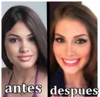 Si esta foto fuera real, la Miss Universo venezolana se habría hecho cirugía en la nariz, mentón y pómulos, más un cambio en el formato de sus cejas y quién sabe el resto del cuerpo.
