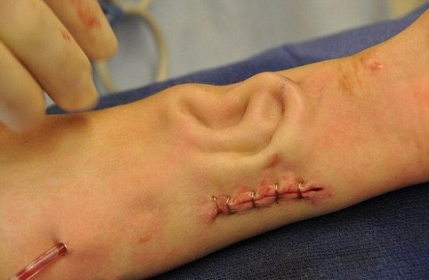 Científicos fueron capaces de hacer crecer una oreja en el brazo de una mujer que había perdido la suya por causa de un cáncer, así le dieron un nuevo órgano con funcionamiento. En 2008, Sherry Walters, de 42 años de edad, estadounidense fue diagnosticada con cáncer de piel de células basales. La mujer tomo un tratamiento intensivo para curar su enfermedad, lo que causo que perdiera una oreja y el conducto auditivo externo izquierdo. Aunque Walters quedó sin una oreja, podía oír con audífonos especiales.