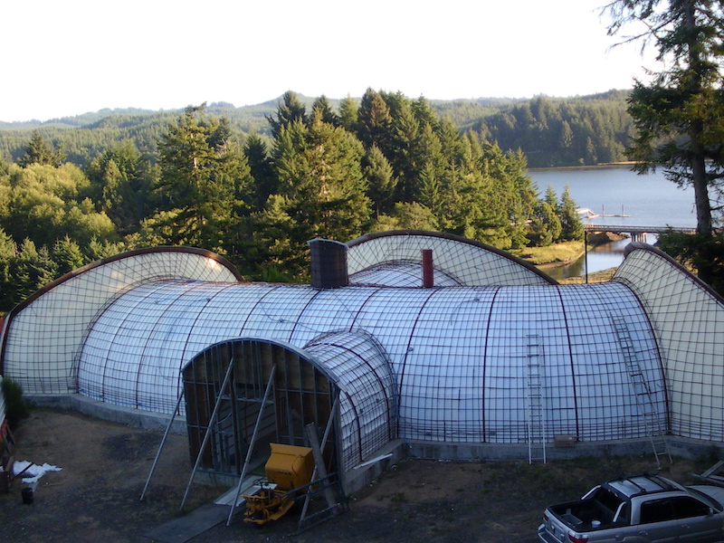 Después se cubre la cara exterior del hormigón con aislantes del mismo tipo que los utilizados en jardinería. El objetivo de estas capas es evitar el paso de la humedad y que, con el tiempo, las plantas no echen raíces en el hormigón. Después se cubre todo el conjunto con tierra y se planta hierba.