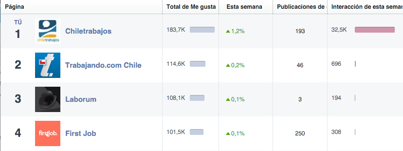 El que se posiciona como líder en materia de interactividad en redes sociales, es Chiletrabajos, emprendimiento que ya cuenta con casi 200 mil likes en facebook, tiene un alcance de casi 1 millón y medio de personas y una interactividad que supera los 32, 5 K.