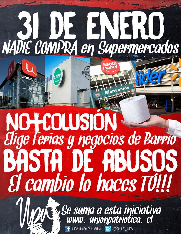 Luego de que el pasado 10 de enero se llamara a no comprar en supermercados y a optar por ferias libres y/o almacenes de barrio, el Frente Ciudadano contra la Colusión organizará una nueva jornada de boicot contra las grandes cadenas, luego de que fueran denunciadas por coludirse para fijar el precio de los pollos.