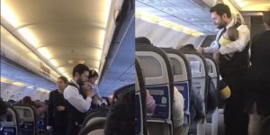 La mujer relata que el trabajador del avión solidarizó con una señora que llevaba a un bebé que no paraba de llorar. El hombre cargó al pequeño y lo paseo por el avión para intentar calmarlo.