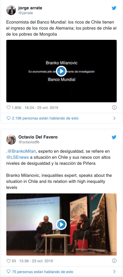 El economista serbio-estadounidense Branko Milanovic, quien trabajó dos décadas en el Banco Mundial y que es experto internacional en desigualdad, se refirió al estallido social que ocurre en Chile.