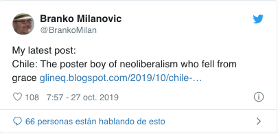 «La caída en desgracia de Chile es sintomática de una tendencia mundial que revela los daños que han causado las políticas neoliberales los últimos treinta años», afirma.