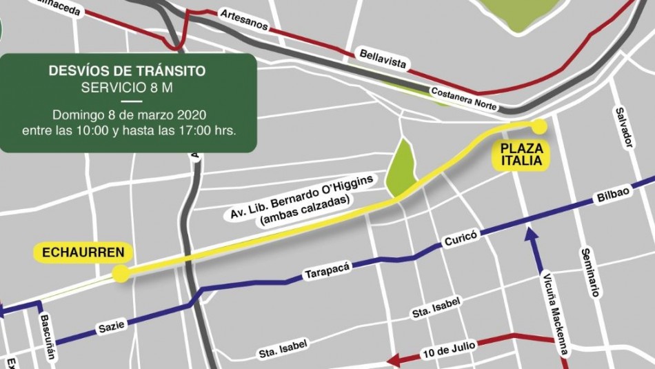 8M: Conoce los desvíos de tránsito que se vivirán en Santiago este domingo