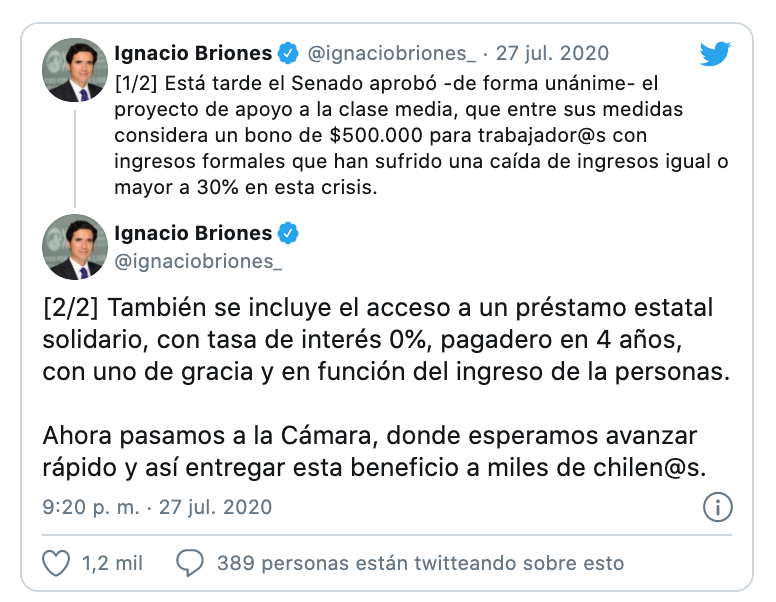 El ministro de Hacienda, Ignacio Briones, anticipó que la forma de entrega de los aportes será «expedita» y «muy fácil de acceder», tal como ha ocurrido con la ayuda a los trabajadores de honorarios a través de la plataforma del SII.