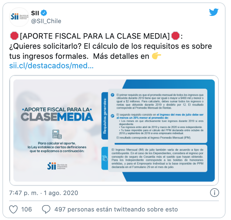 El Servicio de Impuestos Internos (SII) habilitó para ello un apartado especial en su sitio web www.sii.cl, el que también calcula si el trabajador puede recibir este aporte o no de acuerdo a sus registros.