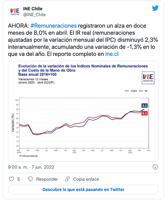 Según informó el INE, las remuneraciones nominales se elevaron un 8% a abril, pero su alza no alcanzó a compensar el efecto de la inflación.