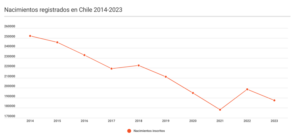 ¿Cuántos hijos tienes? ¿quieres tener hijos? Son preguntas que se escuchan en conversaciones cotidianas y que cobran relevancia cuando sabemos que la natalidad en Chile viene a la baja hace varios años. Aunque en 2022 se notificó un 12% más de nacimientos inscritos que el año anterior, en el recién pasado 2023 la cifra volvió a bajar.