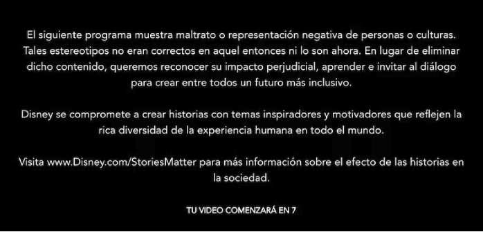 Según el medio Axios, Disney decidió esta semana acabar con los programas DEI y con las advertencias, que se incluyeron en algunas películas, por «descripciones negativas y/o maltrato de pueblos o culturas».