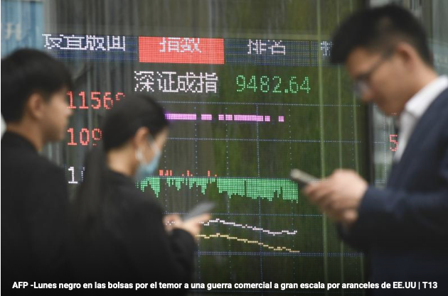 Las bolsas de Asia y Europa se desplomaron este lunes por el temor a una guerra comercial que provoque una recesión a gran escala, desatada por los aranceles de Estados Unidos a sus socios comerciales.