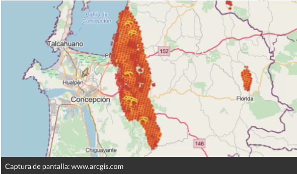 Los mapas que dan cuenta de la afectación por los incendios en el Bío Bío